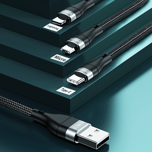 Cáp sạc 3in1 – ROBOT RYT120 Black Chính hãng (Sạc nhanh, Dây dù, 3A, 1m2)