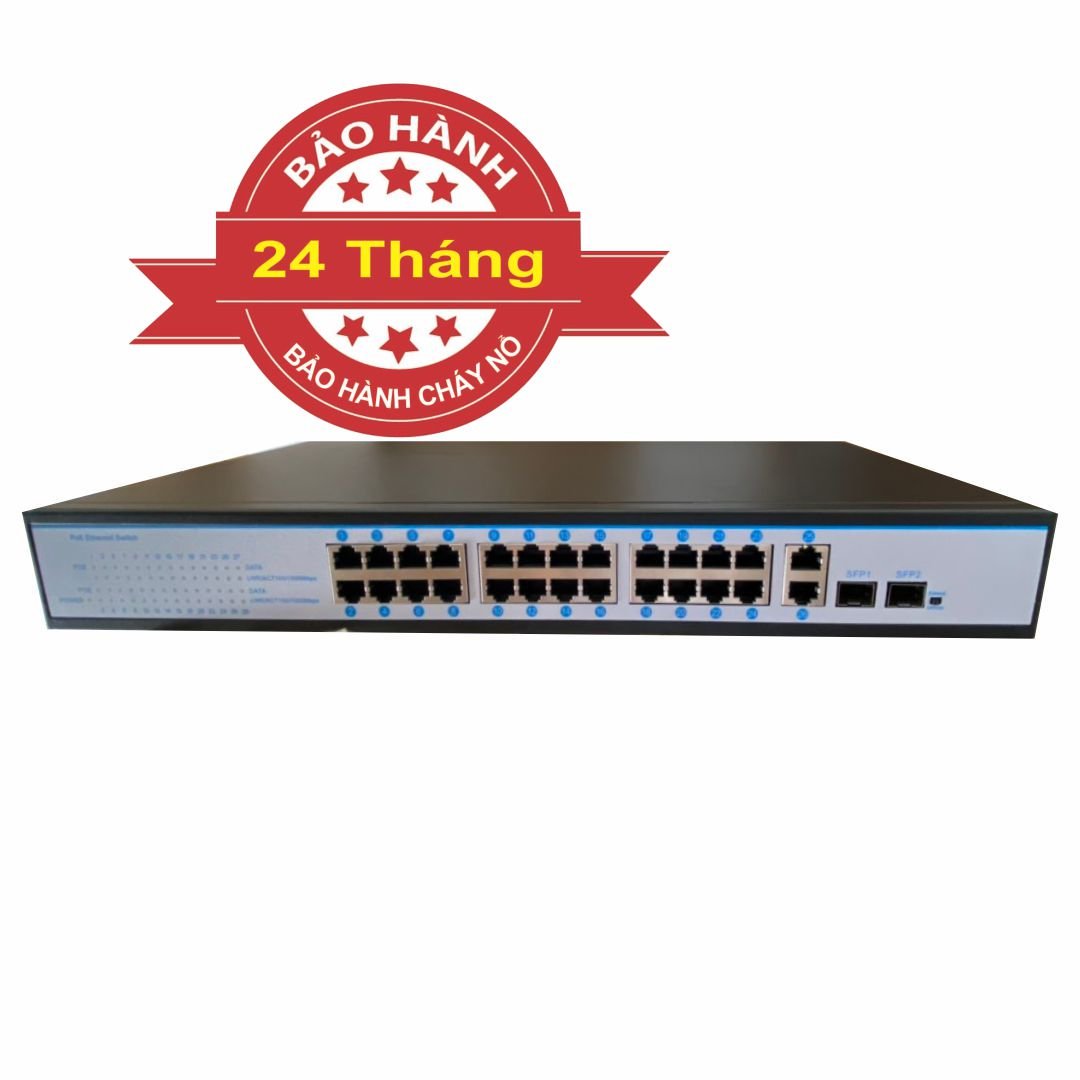 - Hỗ trợ 24 cổng PoE, hỗ trợ IEEE 802.3af (15.4W), IEEE802.3at PoE (30W)